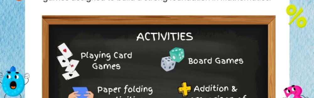 Innovative activity PLAY CARD GAMES, Board Games, Paper folding activities. Developing interest in Mathematics, understanding of basic concepts such as addition, comparison of sums and differences, multiplication, divisibility and factorization. while enjoying the games.